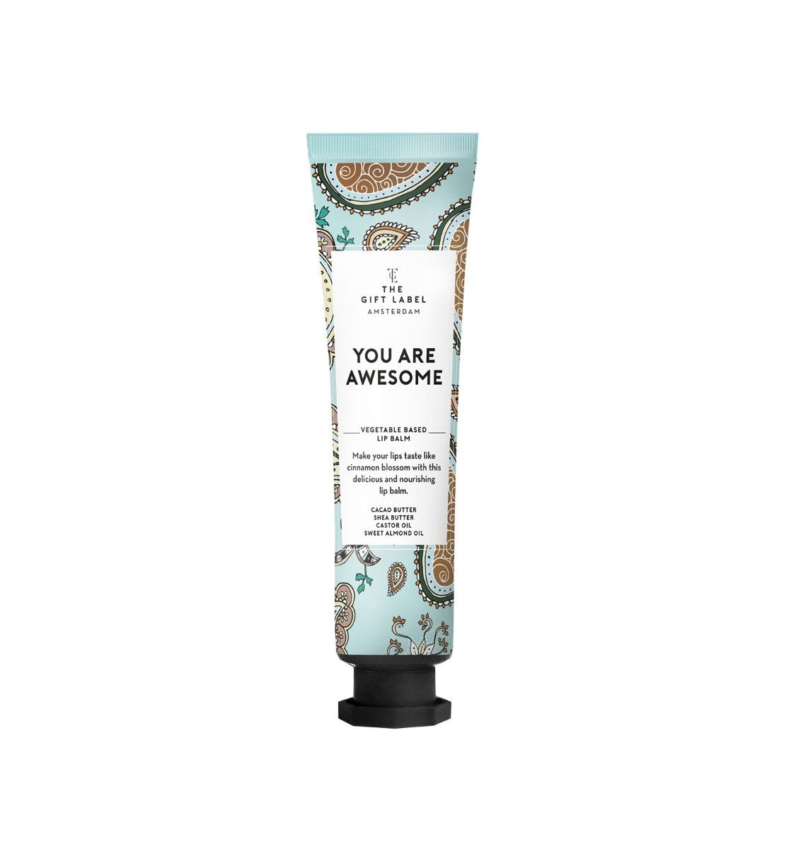 You are awesome! This vegetable lip balm is made in Holland and contains castor oil, sweet almond oil, cacao butter and shea butter. This 15ml tube with delicious lip balm tastes like cinnamon blossom. Kiss those lips!