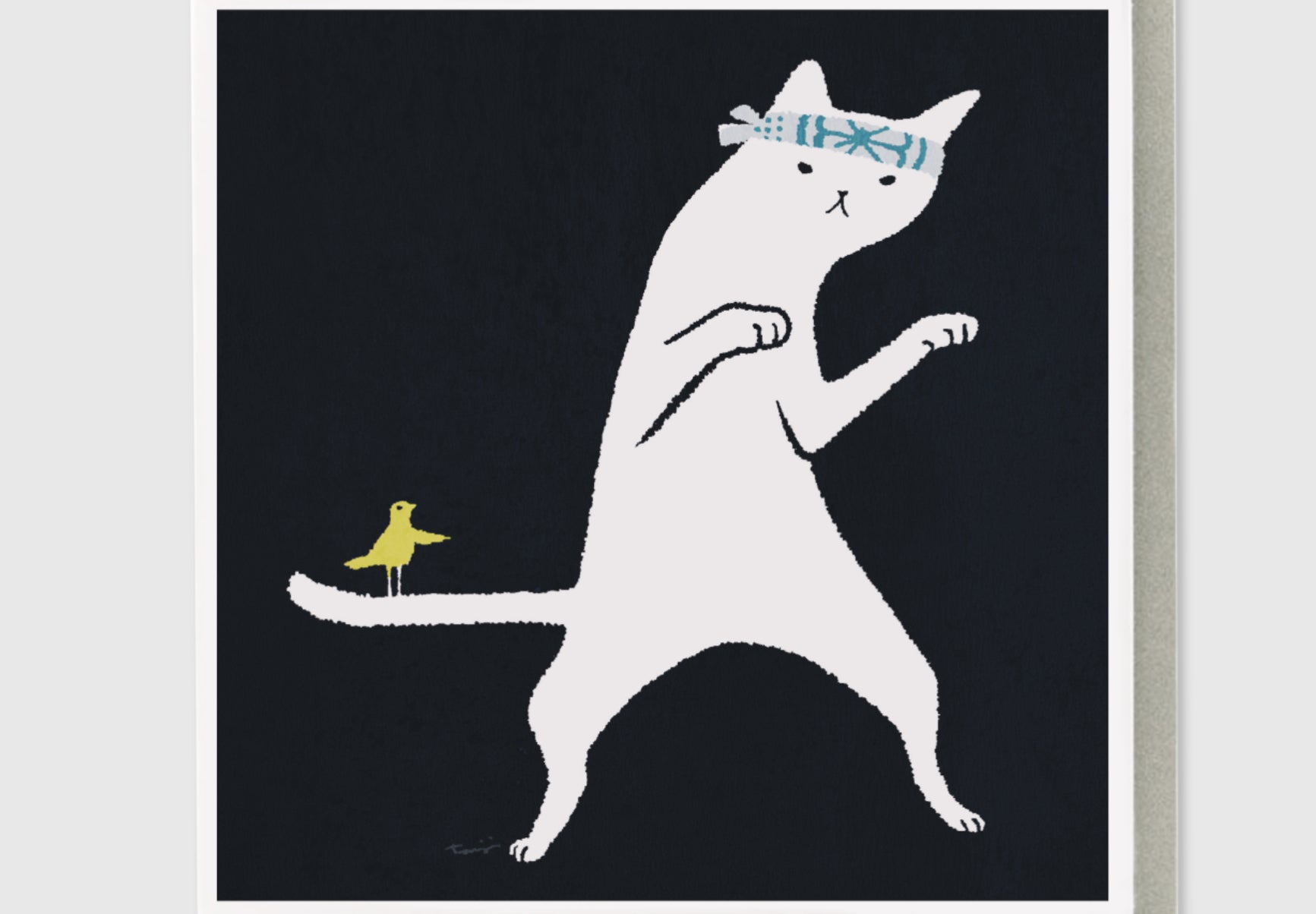 The Ustudio - Toasted - Karate Cat is the perfect card for cat and martial arts lovers. With a karate cat sporting a headband and a bird perched on its tail, this blank inside card is suitable for all occasions. Add a touch of humor to your greetings with this unique design.