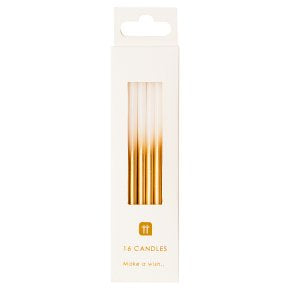 Every cake needs some candles! What better way to celebrate than with Talking Tables Luxury Gold Candles Each pack contains 16 candles and holders in bright colours. Size: 10cm in height.