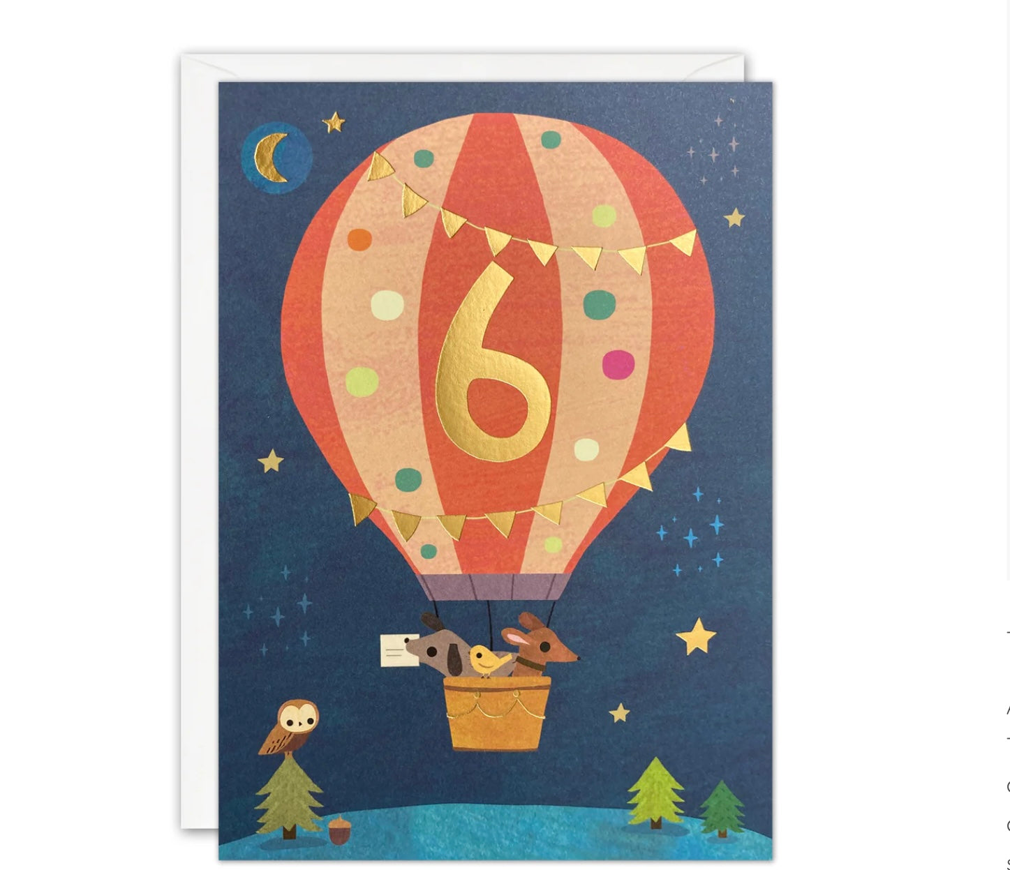 Celebrate a special 6th birthday with this vibrant and eco-friendly balloon card by James Ellis. Featuring a foiled design with cute animals, it's plastic-free and fully recyclable. Blank inside for your own message, it's the perfect addition to any birthday celebratory gesture.