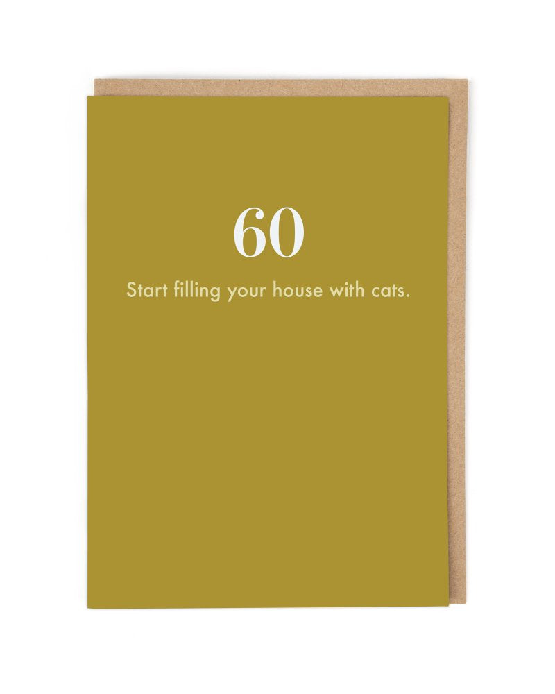 “Start filling your house with cats" 60th birthday card from the Deadpan range.