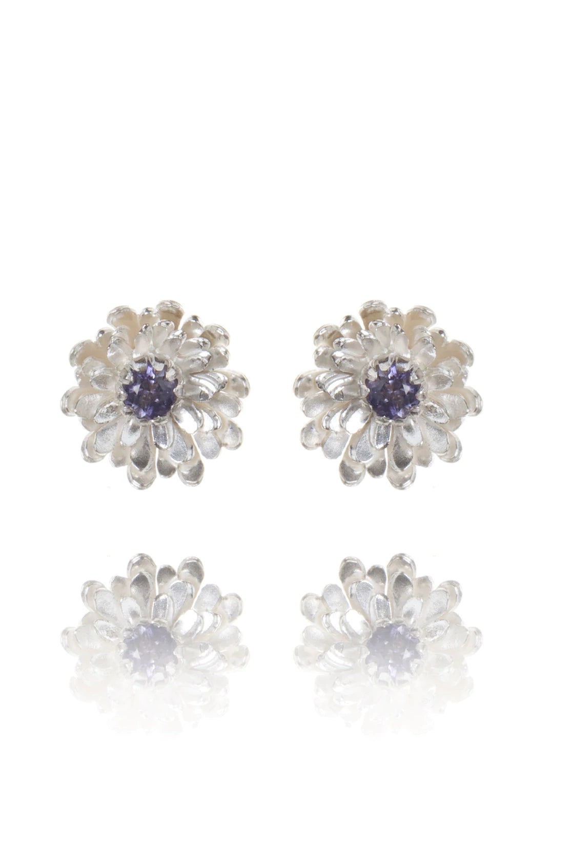 These beautiful earrings dazzle on any occasion with their jewelled centre sparkling from within their many petals. Made from many layers of petals, all soldered together by hand.