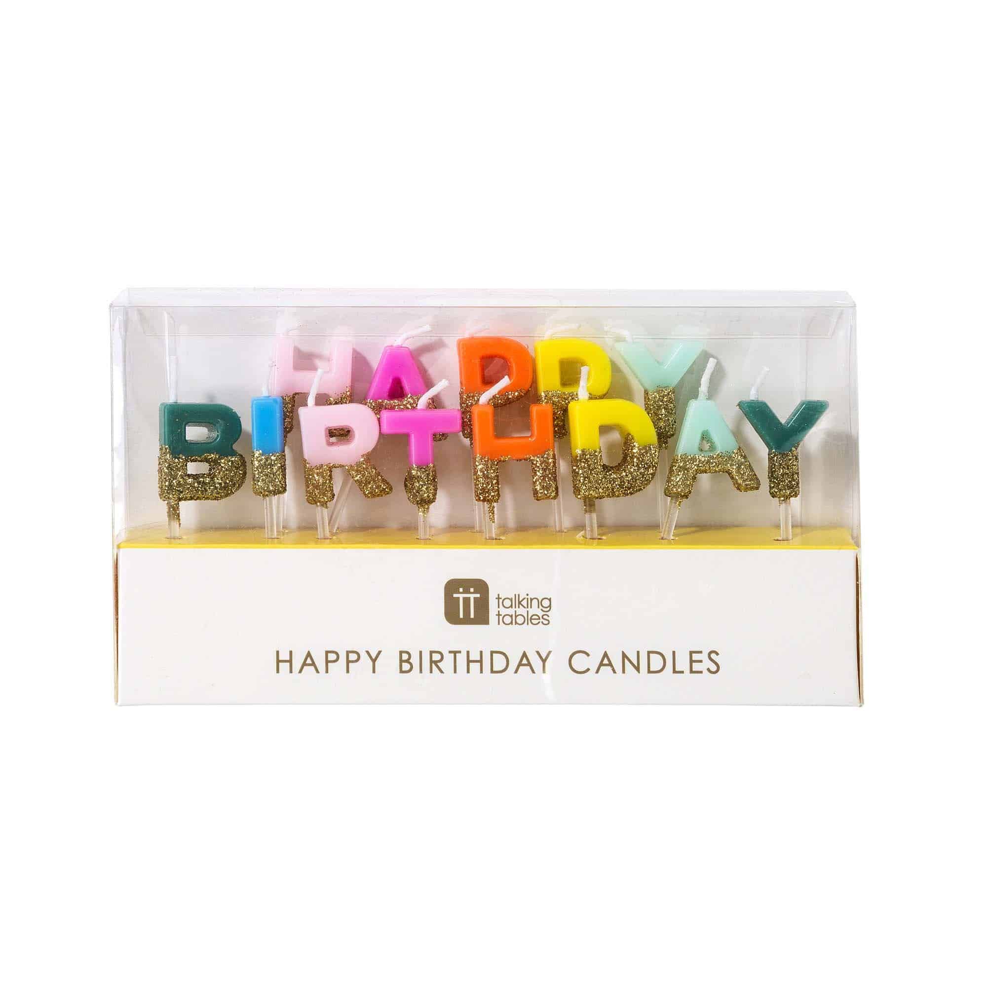 These adorable ‘Happy Birthday’ candles by Talking Tables are dipped in glitter and are perfect for any birthday celebration! Each pack contains 13 multicolour letter candles spelling ‘Happy Birthday’.