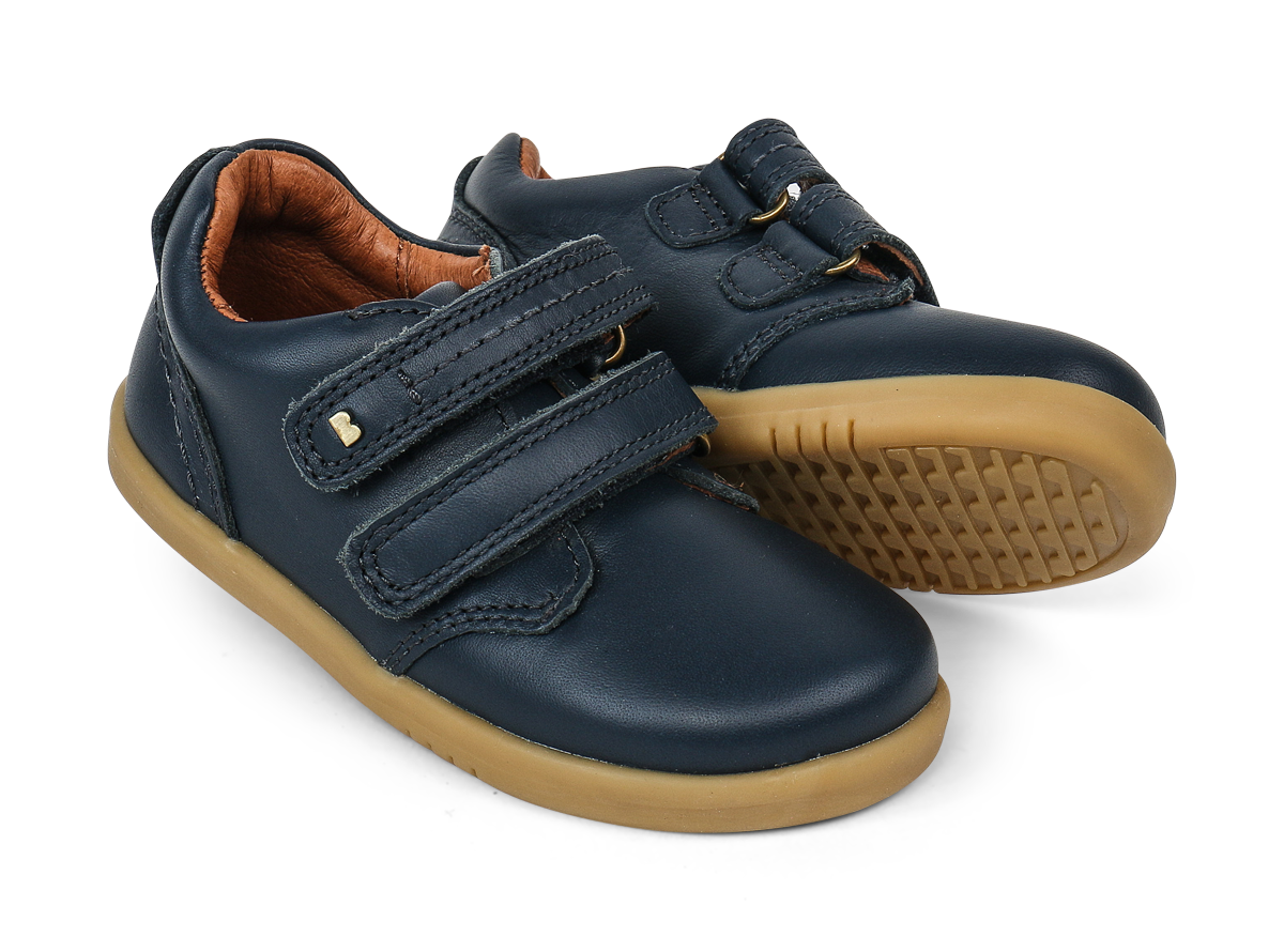This simple dress shoe in a classic navy colourway is a favourite among parents and kids alike thanks to its easy, comfortable fit. The Port shoe's double strap fastening doesn't just make this style a breeze to get on and off, it also provides adjustability to foot width, and a touch of class with a brass stud adorning the upper strap. Extra comfort is added with a padded heel counter and ultra-soft leather lining.