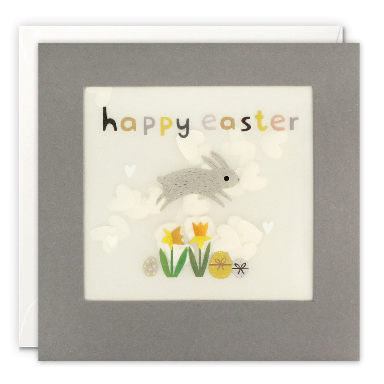 The text on the front of the card reads 'happy easter'. It is blank inside for your own message.