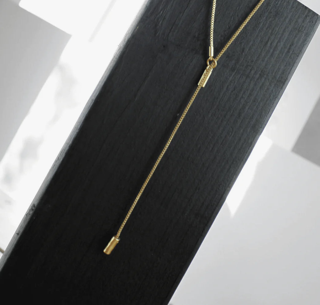 Introducing our Theia Box Chain Necklace in stunning gold plating. With a long and simple design, this necklace adds a touch of understated elegance to any outfit. Elevate your style with this versatile piece.