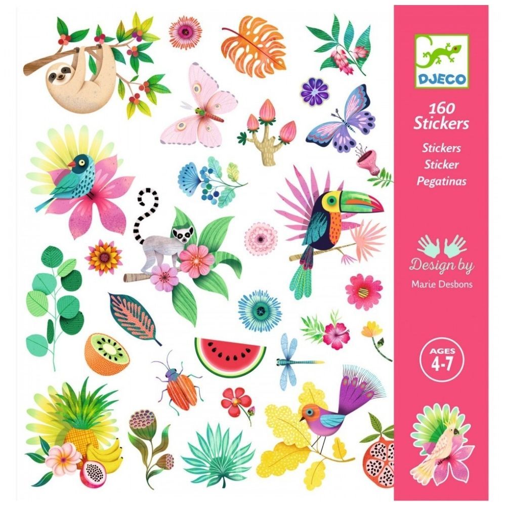 A set of 160 “exotic” stickers. Parrots, sloths, flowers, tropical fruits, etc.Children can arrange the many stickers however they like to create beautiful underwater scenes, or use them to decorate whatever they want!We love this product because;You get 160 stickers...
