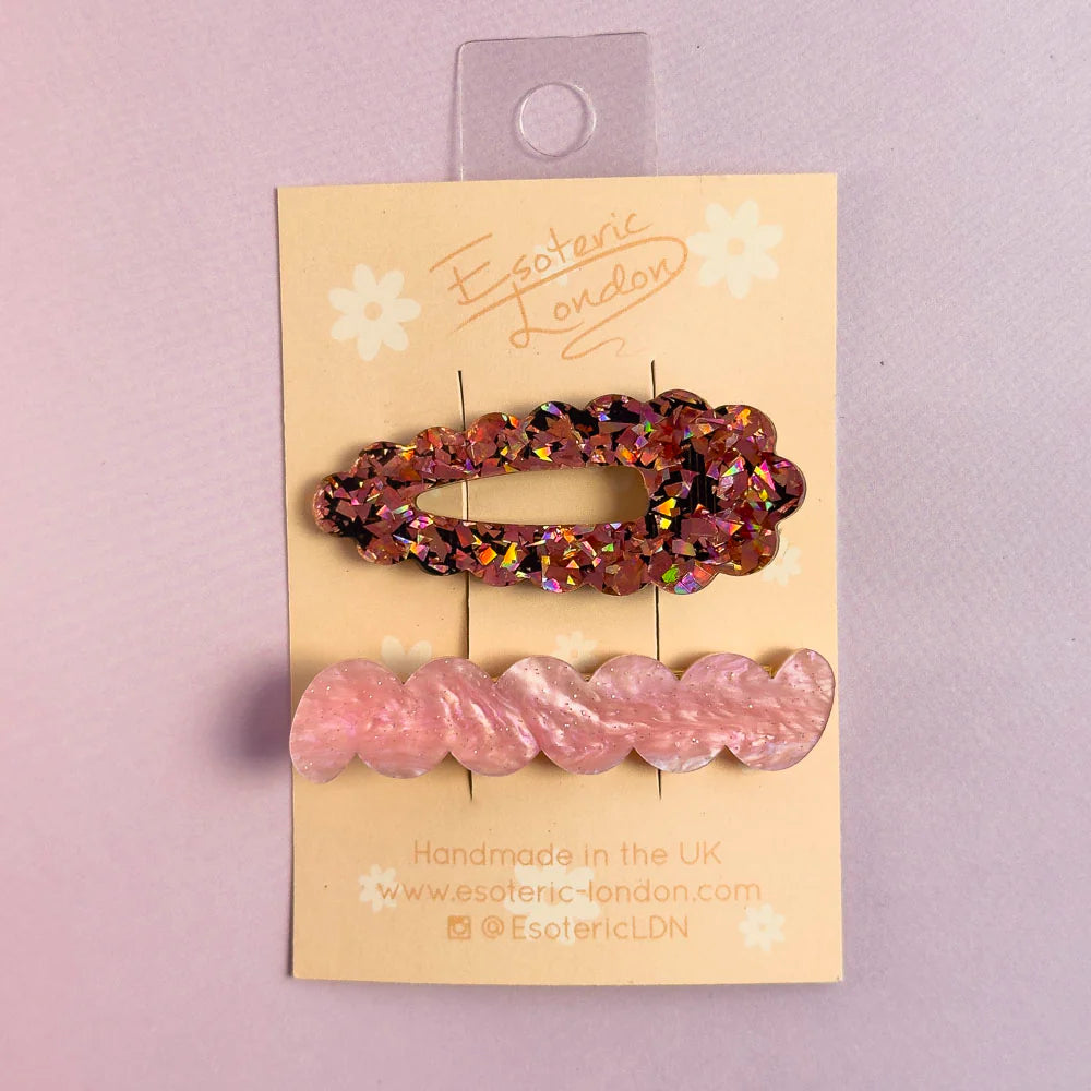 Esoteric London Scallop & Wiggle Disco Hair Clips - Rose Gold /Pink