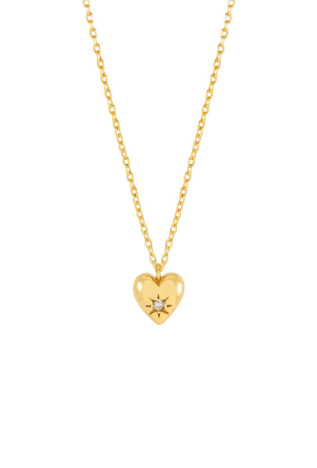 Experience elegance and daintiness with the Estella Bartlett CZ Star Puffed Heart Necklace. Adorned with a delicate CZ star and puffed heart design, this necklace adds a touch of sparkle to any outfit. Made with high-quality materials for long-lasting wear. Perfect for any occasion.