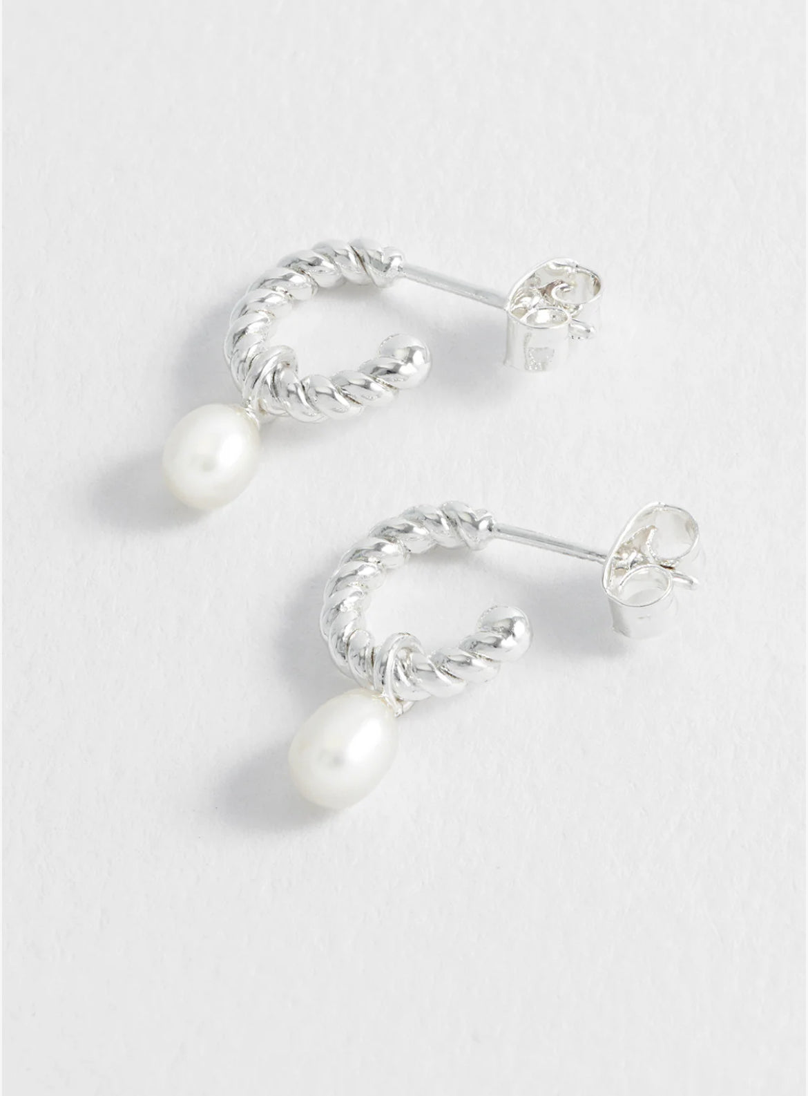 A modern twist on a classic design. These Pearl Drop Hoop Earrings feature elegant pearl drops paired with sleek twisted hoops, effortlessly blending timeless sophistication with contemporary flair.