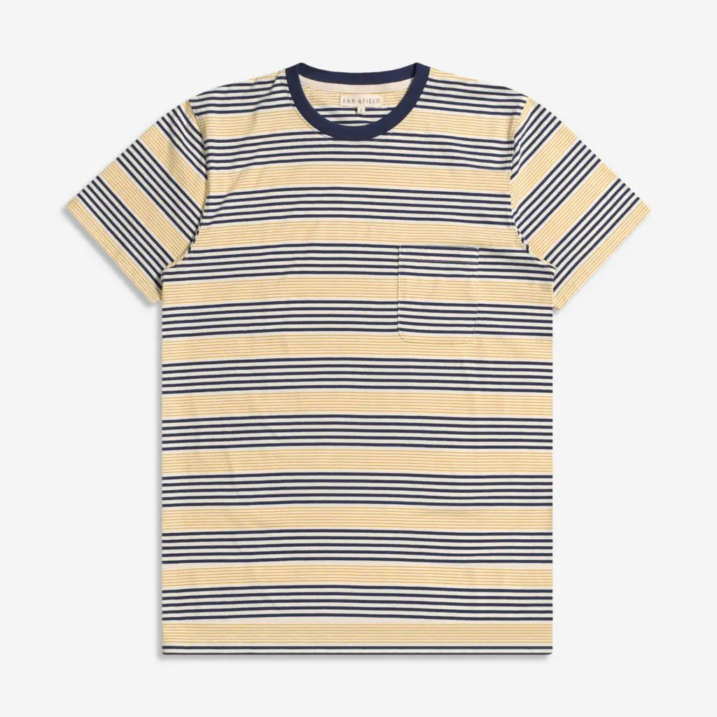 A classic stripy tee made from a yarn-dyed, lightweight BCI cotton. Featuring orange side seem tab and premium quality ribbing.