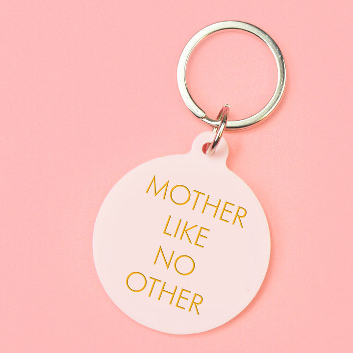 'Mother Like No Other' on pastel pink acrylic with gold engraving and silver keyring.