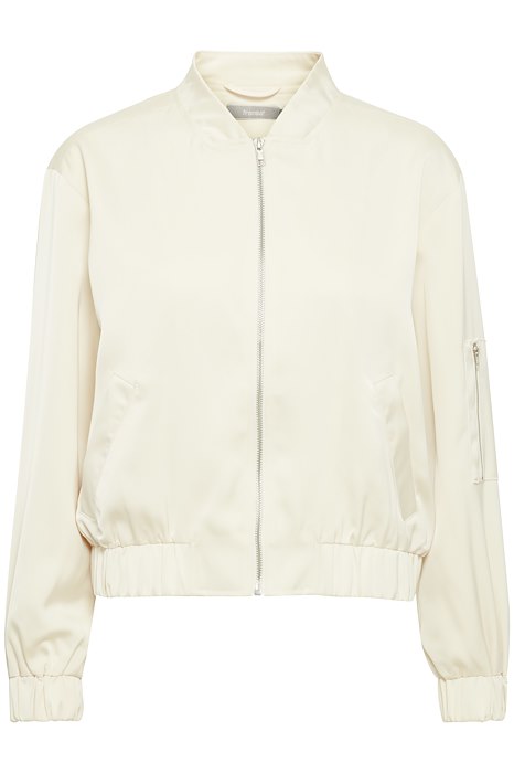 The Fransa Lara Jacket in Whitecap Gray boasts a classic, tailored cut that falls at hip length. Its long sleeves add a touch of sophistication to this high-end bomber jacket.
