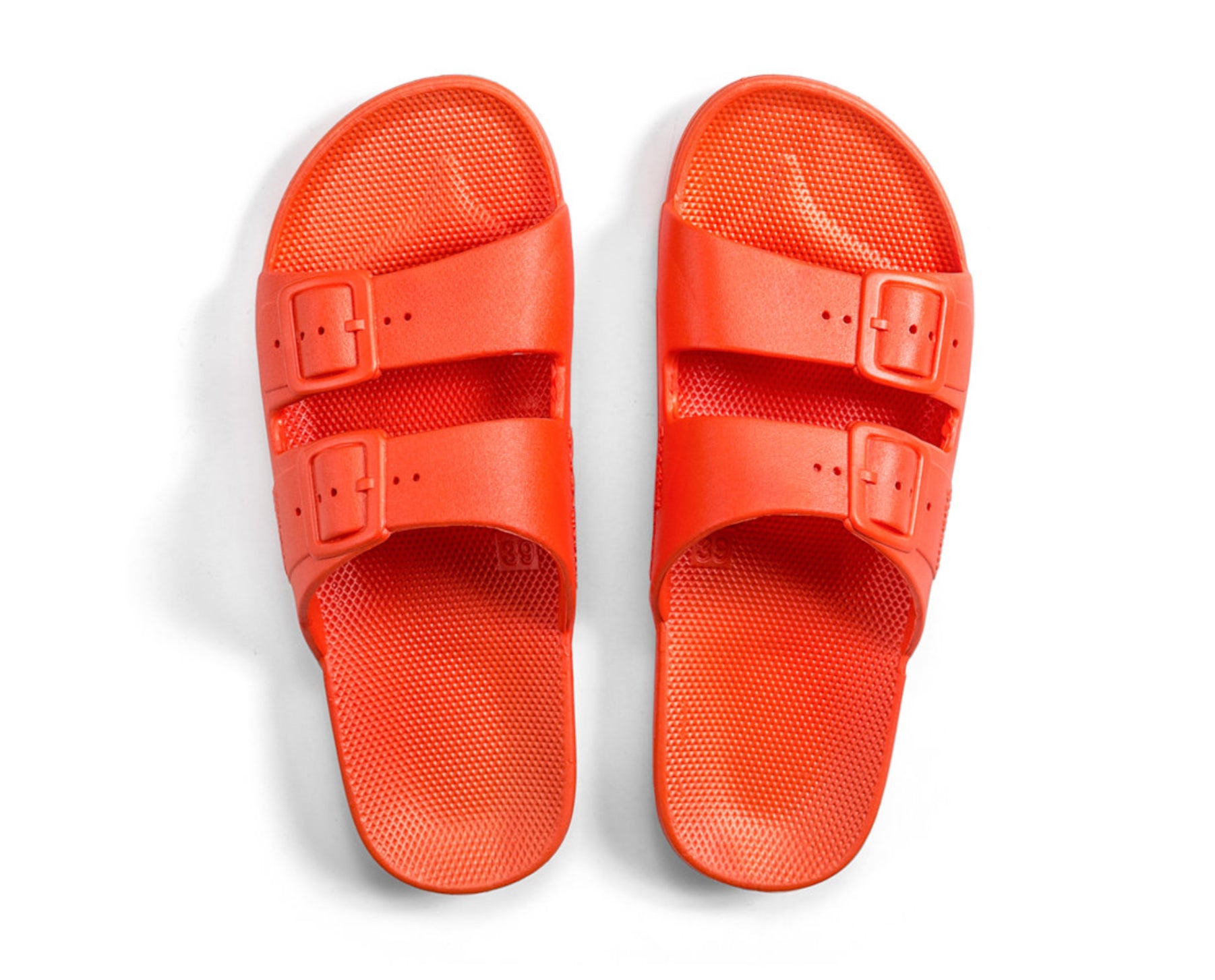 At Freedom Moses we're all about celebrating summer 365 days a year. From am to pm, our vegan slides are injected with air so you feel like you’re walking on a cloud. Whether chilling at the beach or just hanging out, we’re also available for your whole crew, from kids slides to women's slides and men’s slides, if you’re into prints, glitters, metallics or basic colors we’ve got you covered.