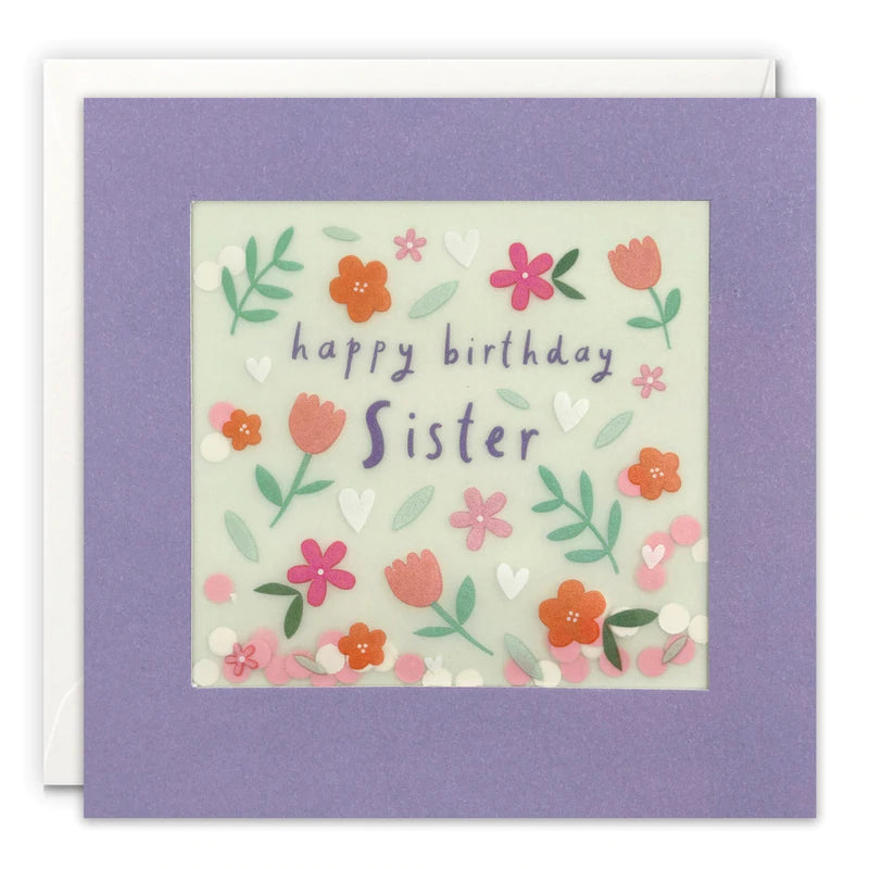 The image is printed on translucent paper, showing coloured confetti dots behind. The confetti moves around when you shake the card.