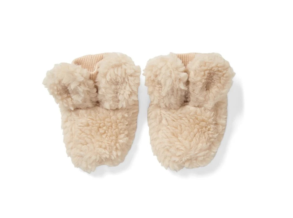 Keep your little ones toes warm with these adorable teddy booties from Little Dutch. Soft to touch and with a gripped sole, these booties are the perfect house slipper or to keep warm during the winter months. The ribbed ankles are comfortable and will keep these cute boots on. They're available in two sizes.