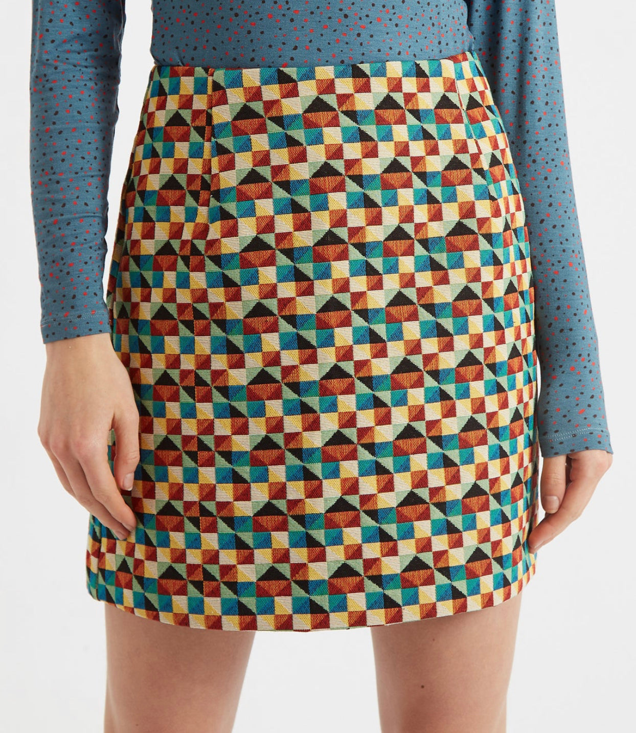Spice up your look with this sassy Aubin Geo jacquard mini skirt! Crafted in a colourful woven jacquard with a flattering A-line cut, it'll be a comfy and distinctive addition to any outfit.