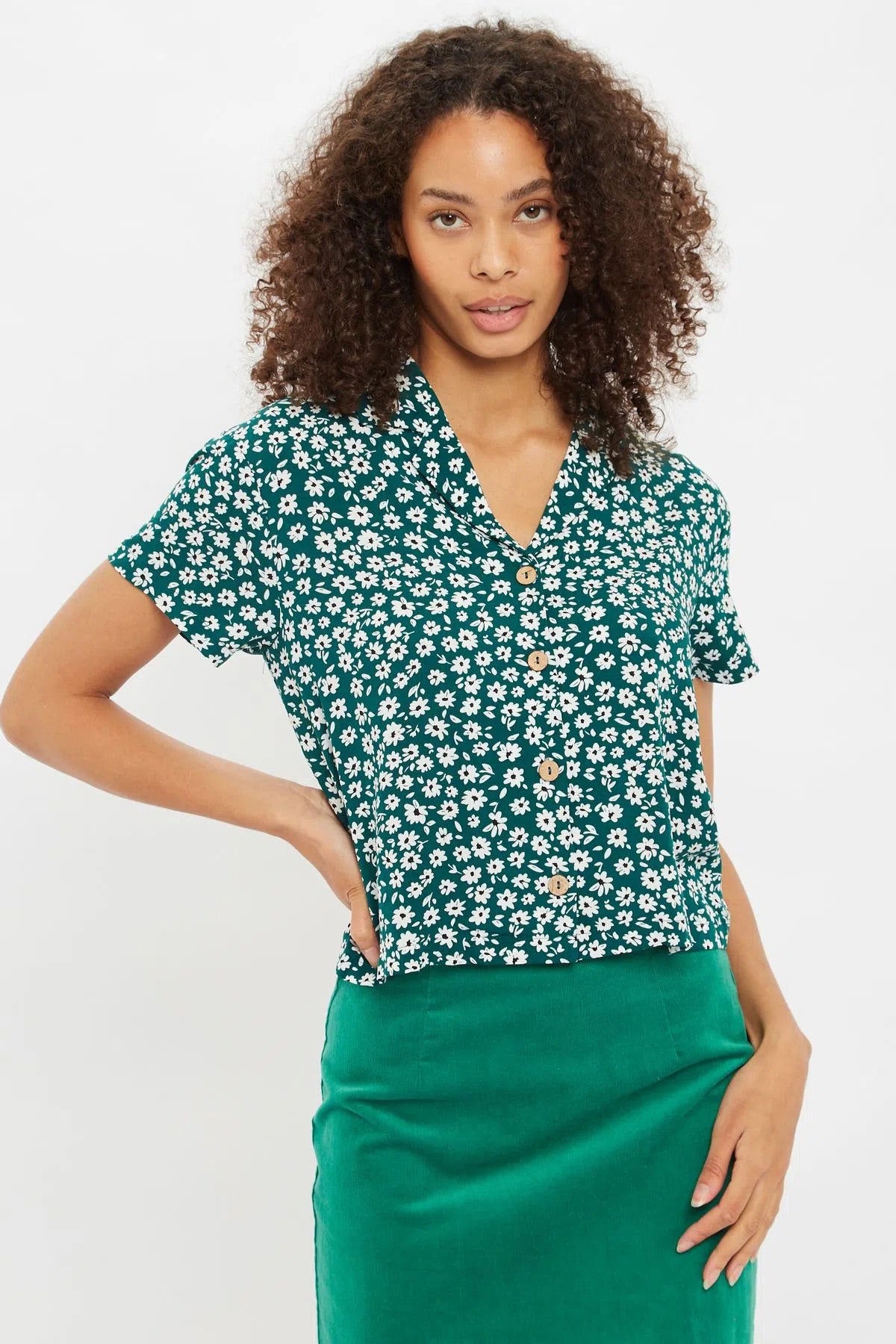 Easy, airy and just a touch cropped. This relaxed fit bowling shirt, crafted in our ditsy flower sketch print in red is just perfect for summer day dressing or alternatively layer over a long sleeve turtle neck on those more chilly days for a practical but quirkier look.