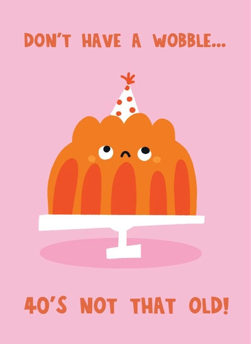 This funny cute jelly card is perfect for that friend who is freaking out about turning 40. Tell them to calm down and not to wobble with this humorous simple illustrated card in pink and orange.