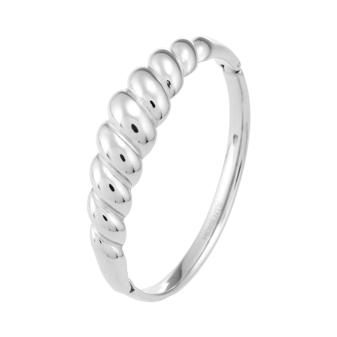 The Moments Elisa Bangle is expertly crafted with durable stainless steel, making it both hypoallergenic and waterproof. Its sleek design and high-quality material ensure long-lasting wear and everyday sophistication. A must-have addition to any jewelry collection.