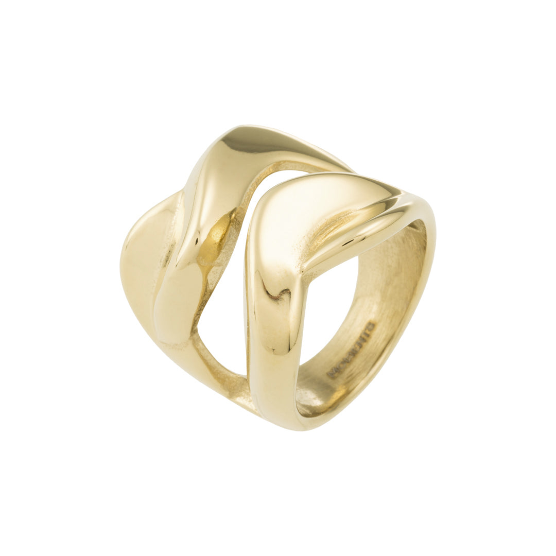 Expertly crafted with 14 kt gold plated stainless steel, the Moments Irene Ring Gold is both hypoallergenic and waterproof. Say goodbye to irritation and tarnishing, and hello to a stylish and durable accessory that will elevate any outfit. Perfect for any occasion, this ring offers the perfect blend of fashion and function.