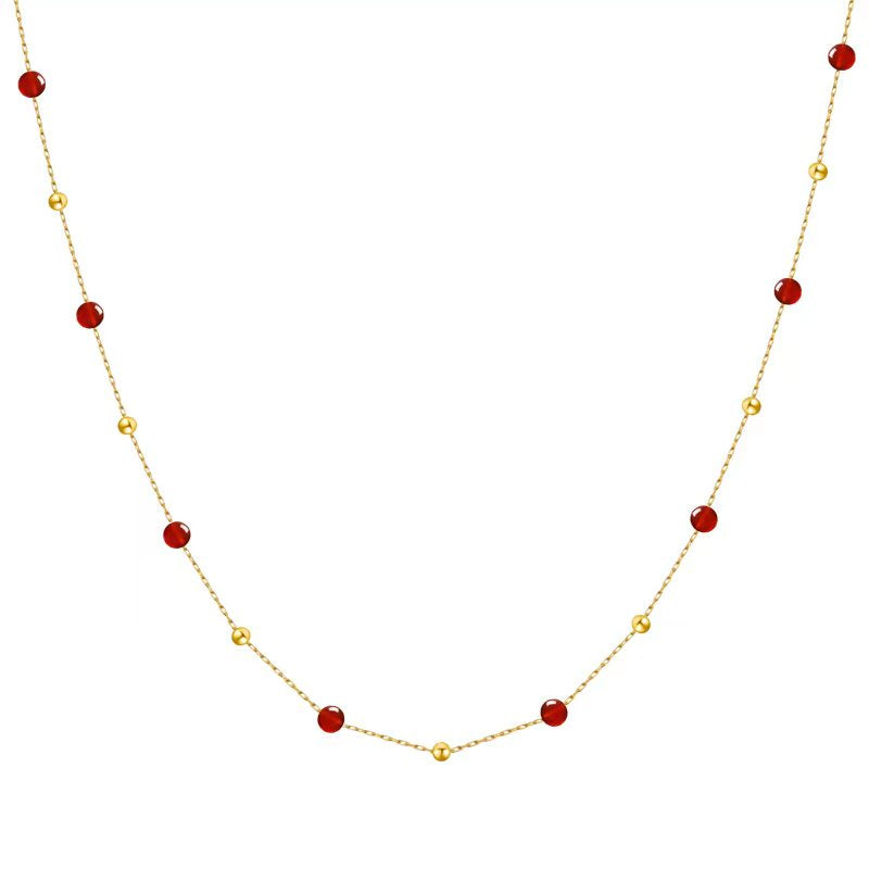 Expertly crafted from high-quality stainless steel and 14-karat gold plating, our Moments Luna Red Crystal Necklace adds a touch of sophisticated color to any ensemble. Its delicate chain design is adorned with small red crystals, providing a subtle shimmer. Durable and hypoallergenic, this necklace is perfect for any occasion and can be paired with the matching bracelet for a complete look. Water-resistant and versatile, it effortlessly elevates any outfit.