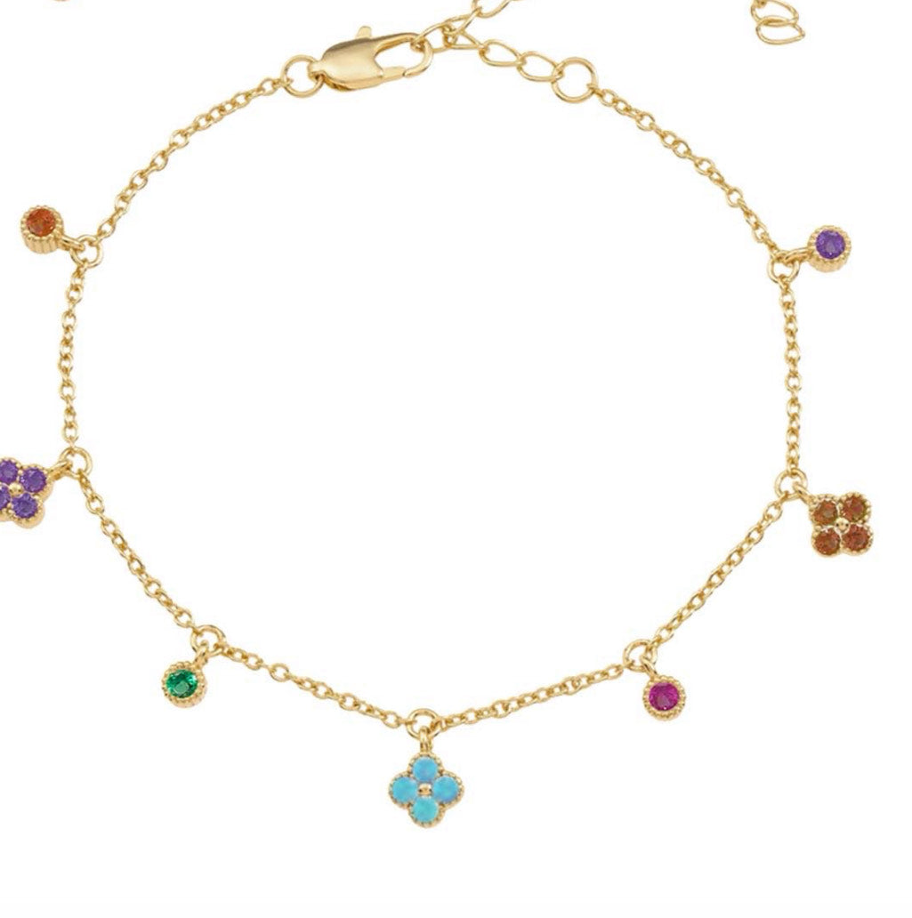 This Moments Eternal Spring Multicolour Bracelet features vibrant cubic zirconia stones set in 18kt gold-plated brass. Its adjustable chain ensures a perfect fit, adding a touch of colourful elegance to any outfit.