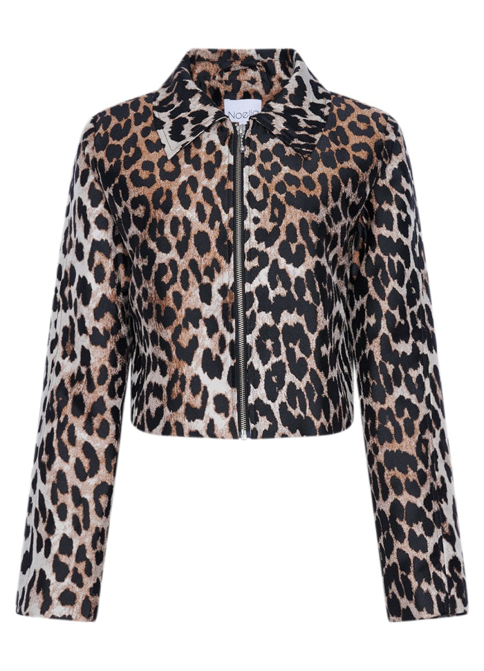 Introducing the Noella Jessi Jacket, a must-have for the fashion forward. With its short silhouette and striking leopard print, this jacket exudes sophistication and luxury. The collar and front pockets add a touch of practicality to this piece that is sure to turn heads.