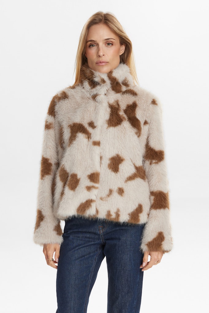 Cream and caramel faux-fur jacket — soft, playful, and effortlessly chic for a cosy autumn statement.