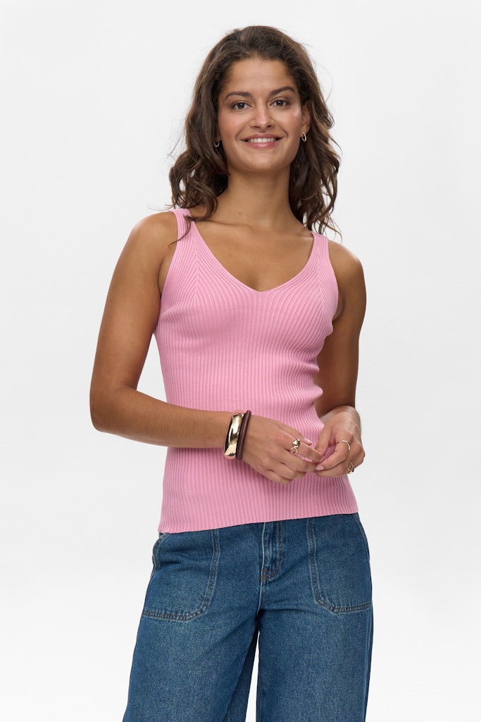 This Numph Cerys Top in Orchid Smoke features a soft knit offering comfort and sustainability.