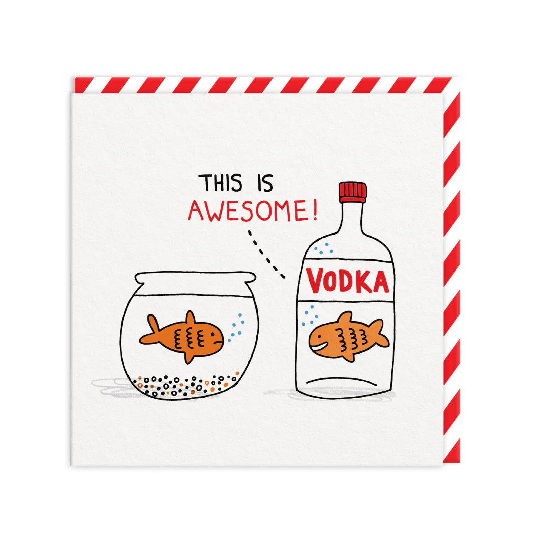 Goldfish dreams and vodka schemes! Gemma Correll’s boozy fish sets a quirky tone—send it to someone who loves a good laugh with a splash.