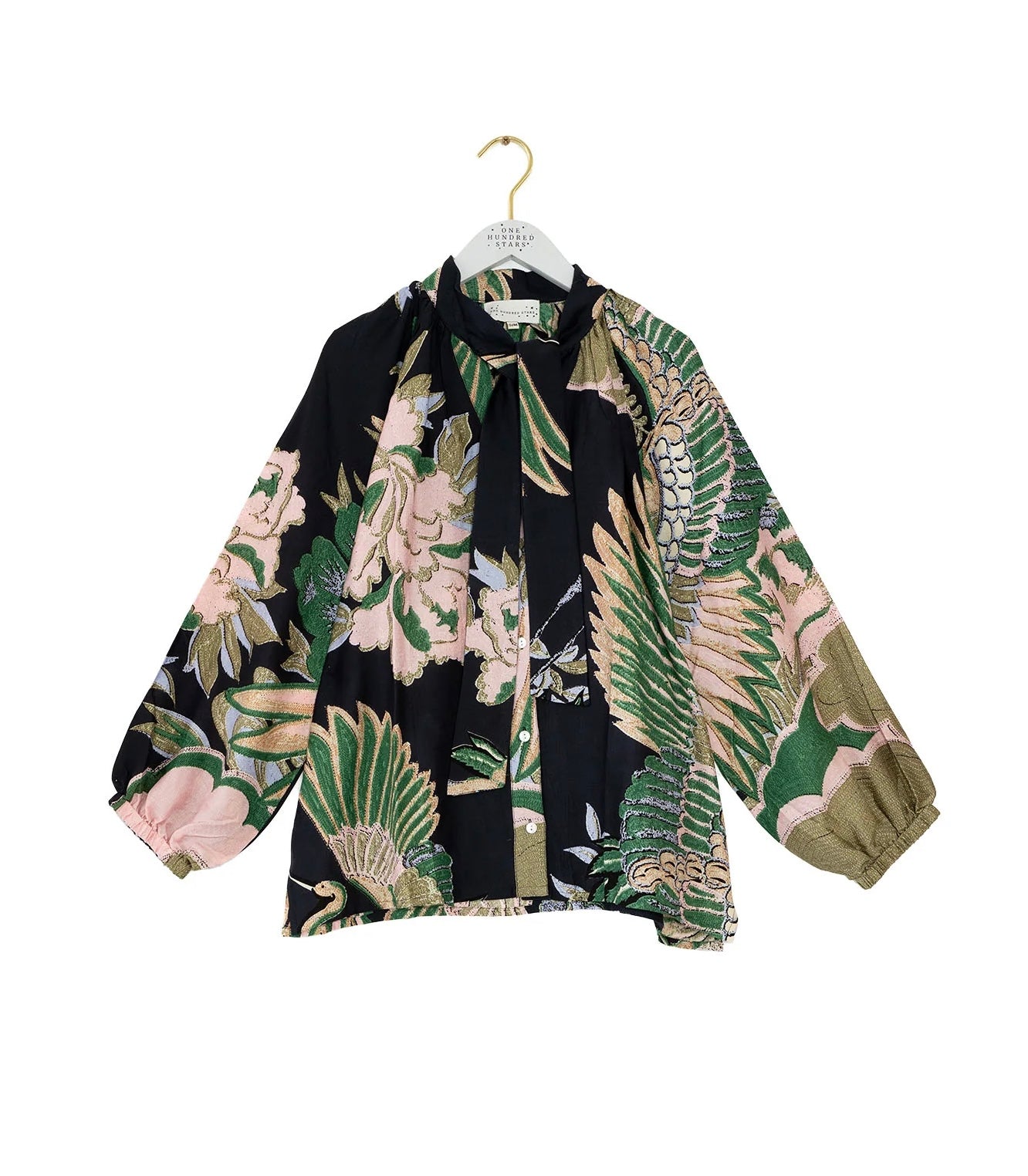 This classic shape blouse shows the prints beautifully. The Pussy-bow can be teamed with the A line skirt for a more formal look or worn or simply as a casual blouse.
