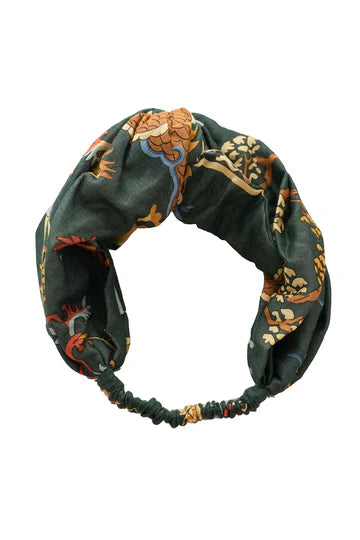 Elevate any look with our Dragon Green Headband by One Hundred Stars. Made from the offcuts of our kimonos and gowns, each headband is one-of-a-kind. Versatile and convenient, it's perfect for keeping hair off your face or during your skincare routine. The elastic back ensures a comfortable fit for all.