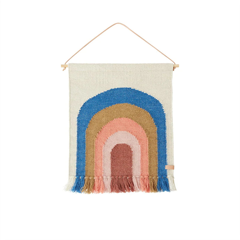 The small Follow The Rainbow Wall Rug is hand-woven in bright colours and is designed with fringes at the bottom. The upper part is folded on a stick with a string for hanging. The wall rug will be such a lovely wall decoration in every room of the home.