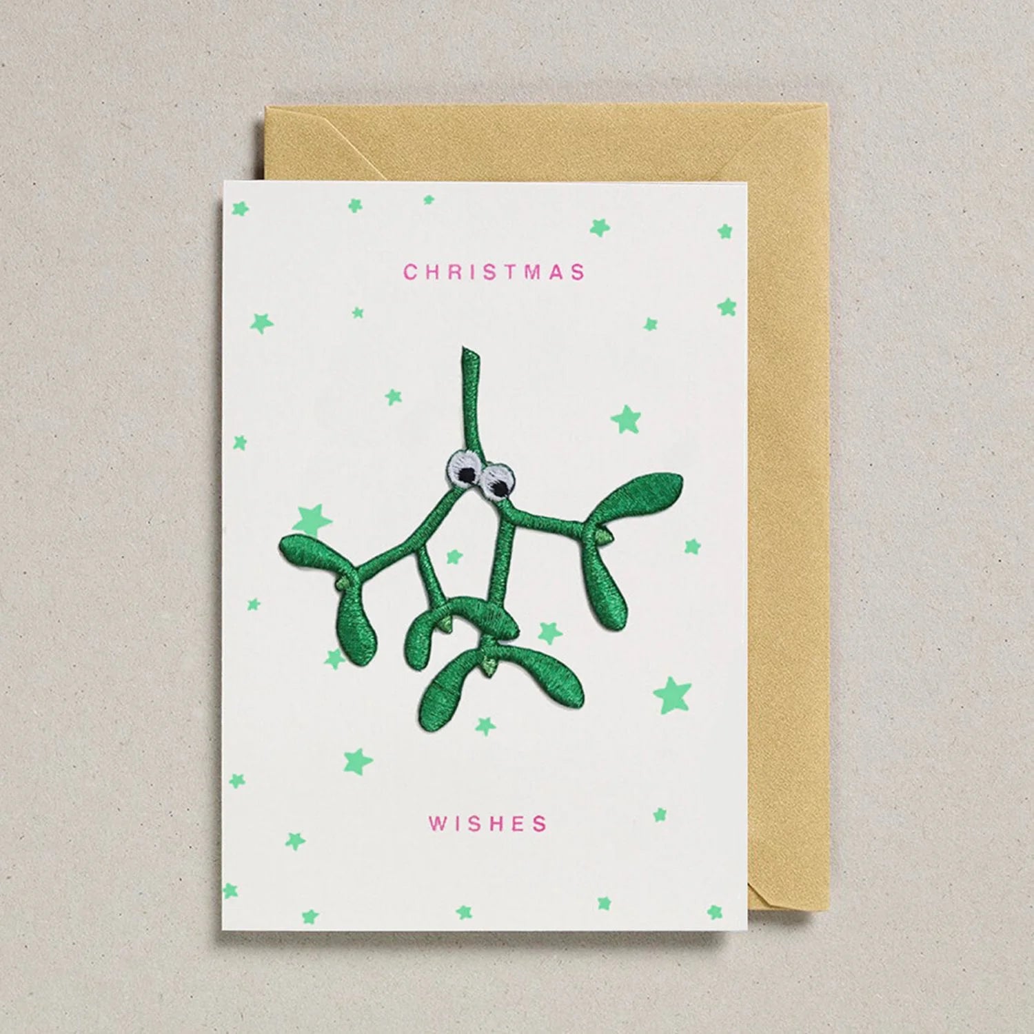 This Iron on Patch 'Mistletoe ’ greeting card is a unique Risograph print using soy based inks.