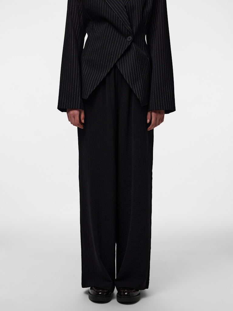 Pieces Tiffany Wide Pants in classic black offer effortless style and comfort. These relaxed-fit trousers feature a flattering wide leg silhouette, perfect for creating contemporary looks. A versatile wardrobe essential that pairs with everything.