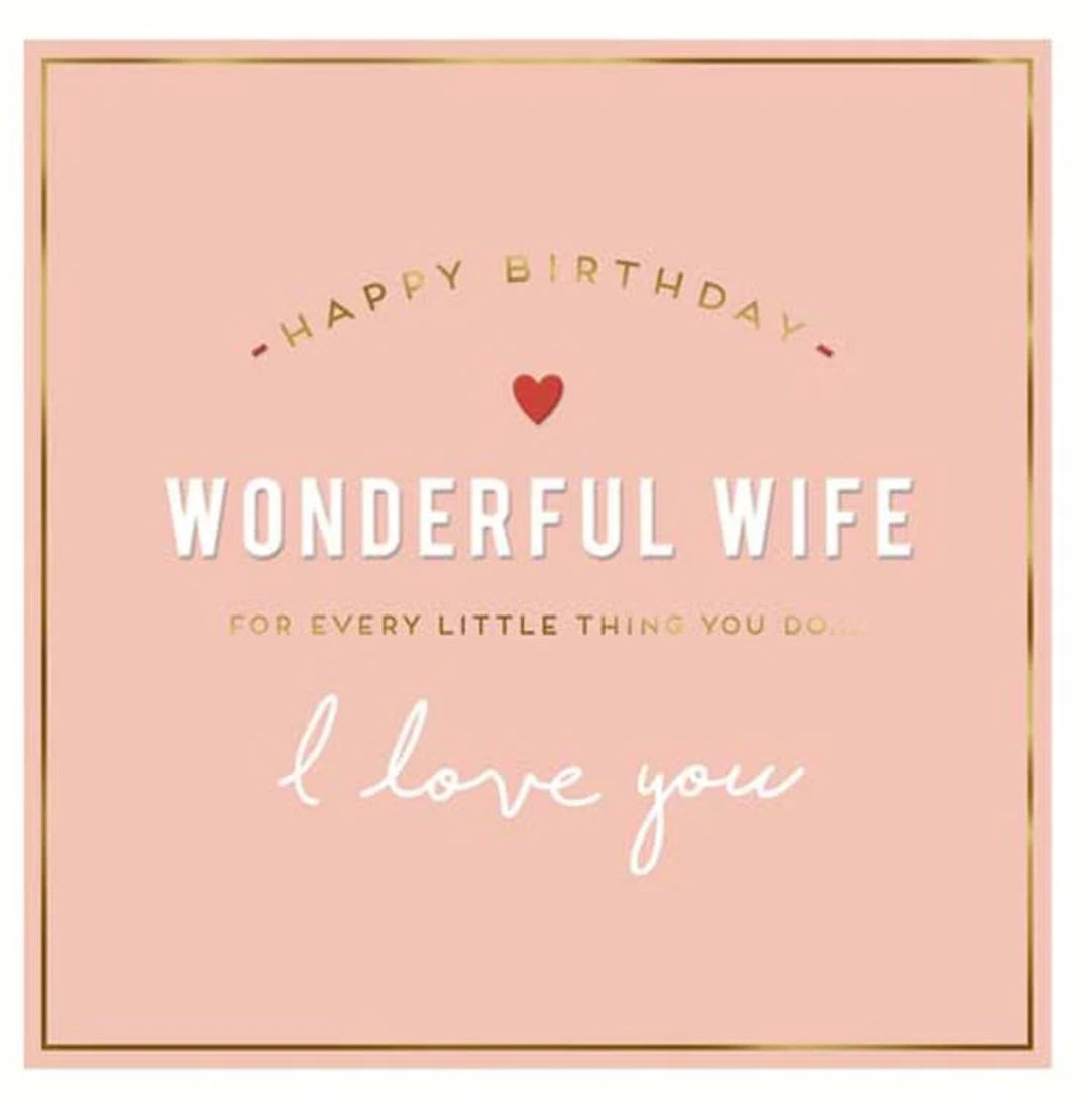 Wish your wonderful wife a very happy birthday with this stylish typography design birthday card by Alice Scott for Pigment Productions.