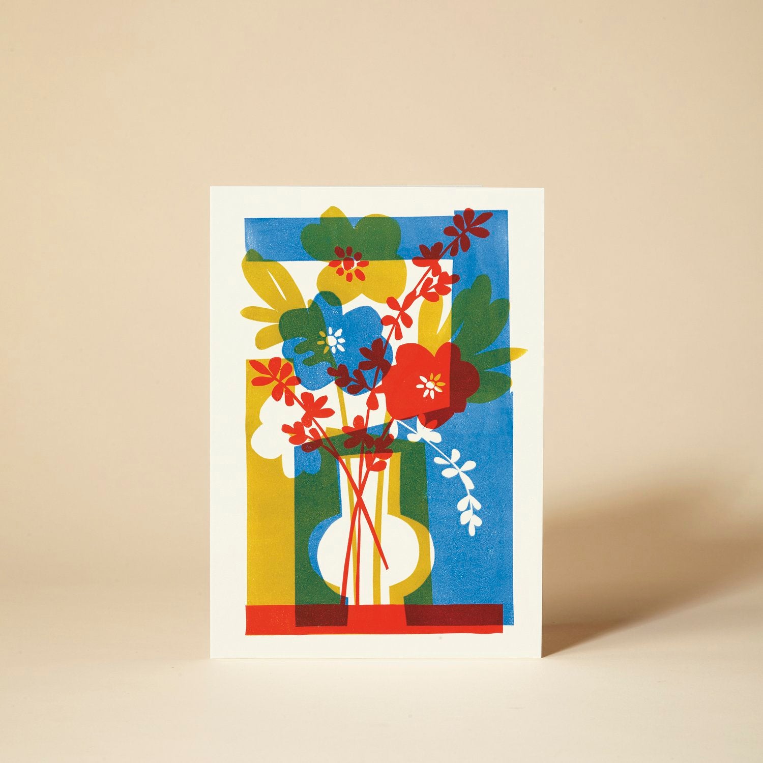 This vibrant, stylised floral still life was originally produced by Pressed & Folded as a limited edition linocut, now available as a beautiful greeting card, perfect for all occasions.