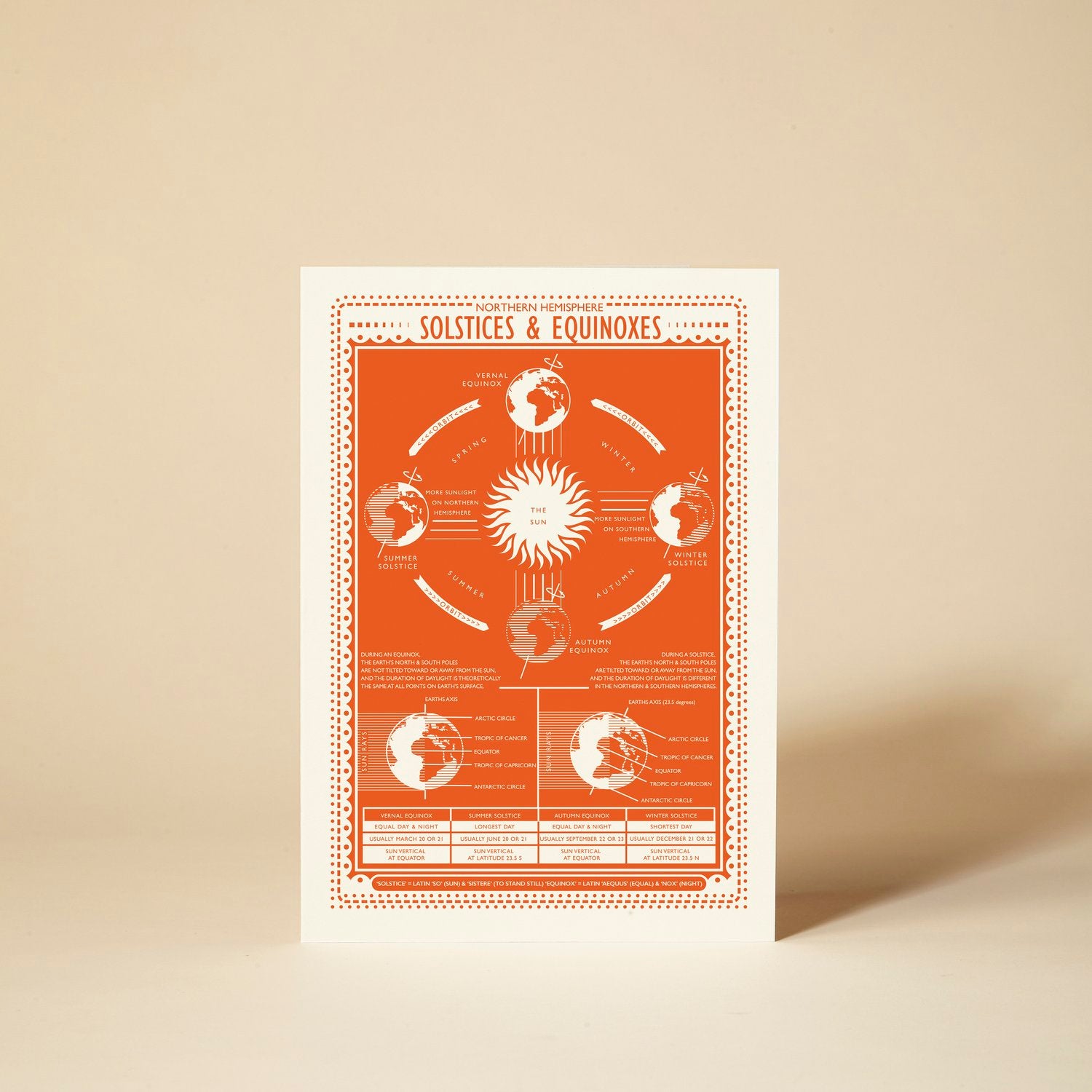 Solstices and Equinoxes - Explaining the solstices and equinoxes and listing their approximate dates for the northern hemisphere, this was originally produced as an A3 screenprint (available here) and now available as a beautiful greeting card perfect for all occasions.