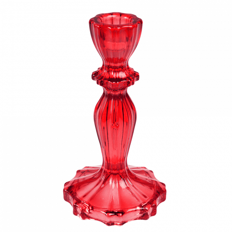 Enjoy a cosy home with the soft glow of candlelight. This red glass candle holder features an ornate design will that add a bold pop of colour to any dining table or mantelpiece.