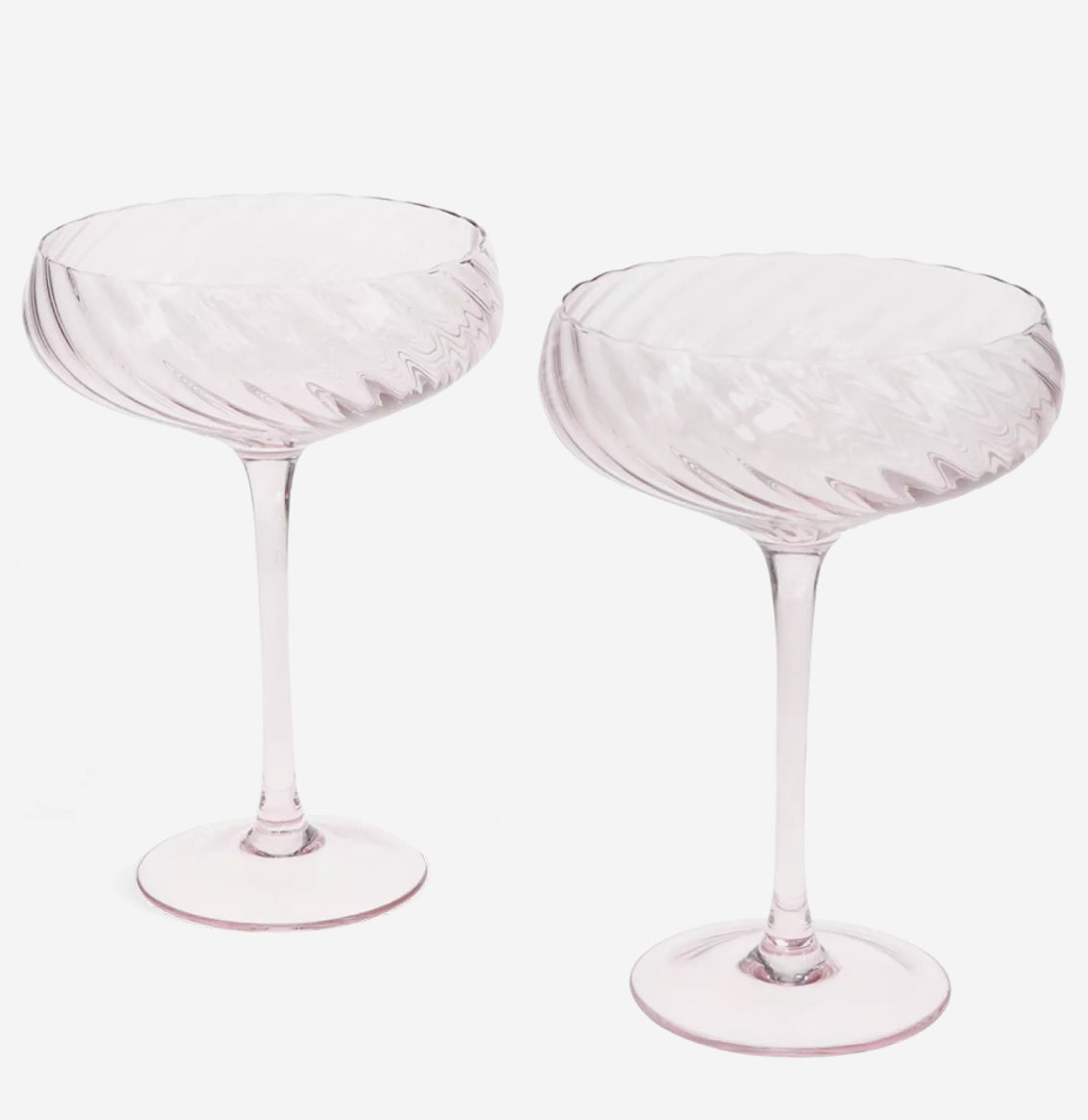 Make the most of girls' night with this pair of pink cocktail glasses. Whether you're hosting a party or enjoying a quiet night in, these delicate, elegant glasses bring a touch of retro styling and class to any occasion.