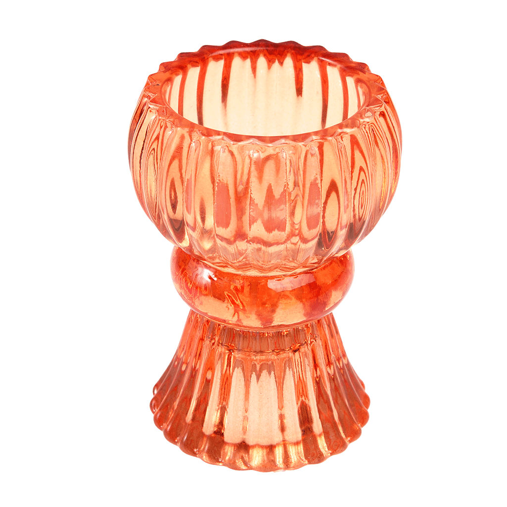 Add a comforting glow to your home with candlelight! This glass candle holder can be placed either way up to accommodate taper candles or tealights. Its elegant design will add a subtle pop of colour to any home.