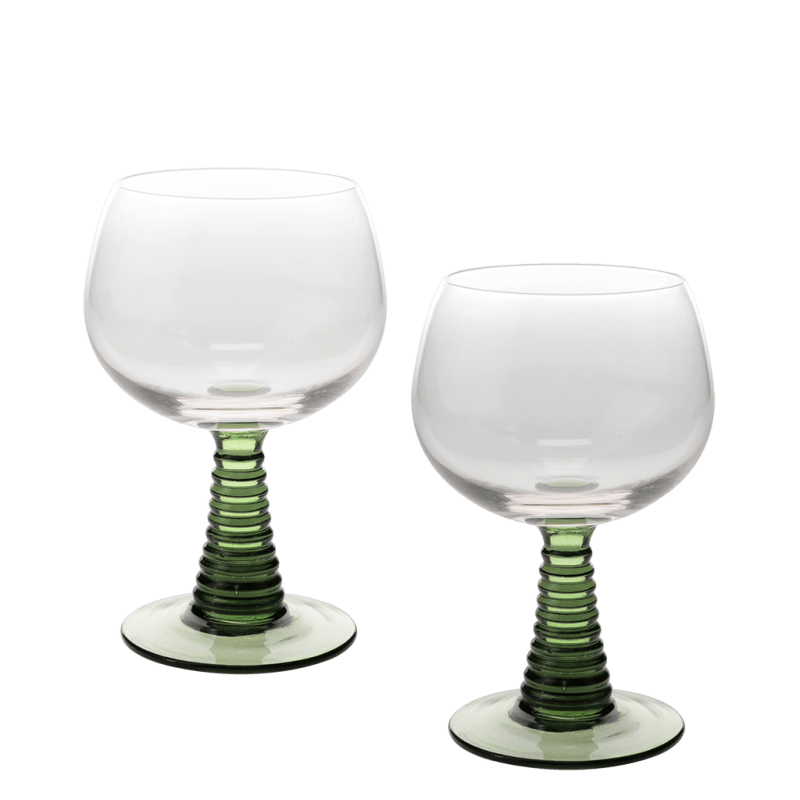 Inspired by a Roemer-style vintage look, these stunning glasses feature a sleek design and striking green ribbed stem.