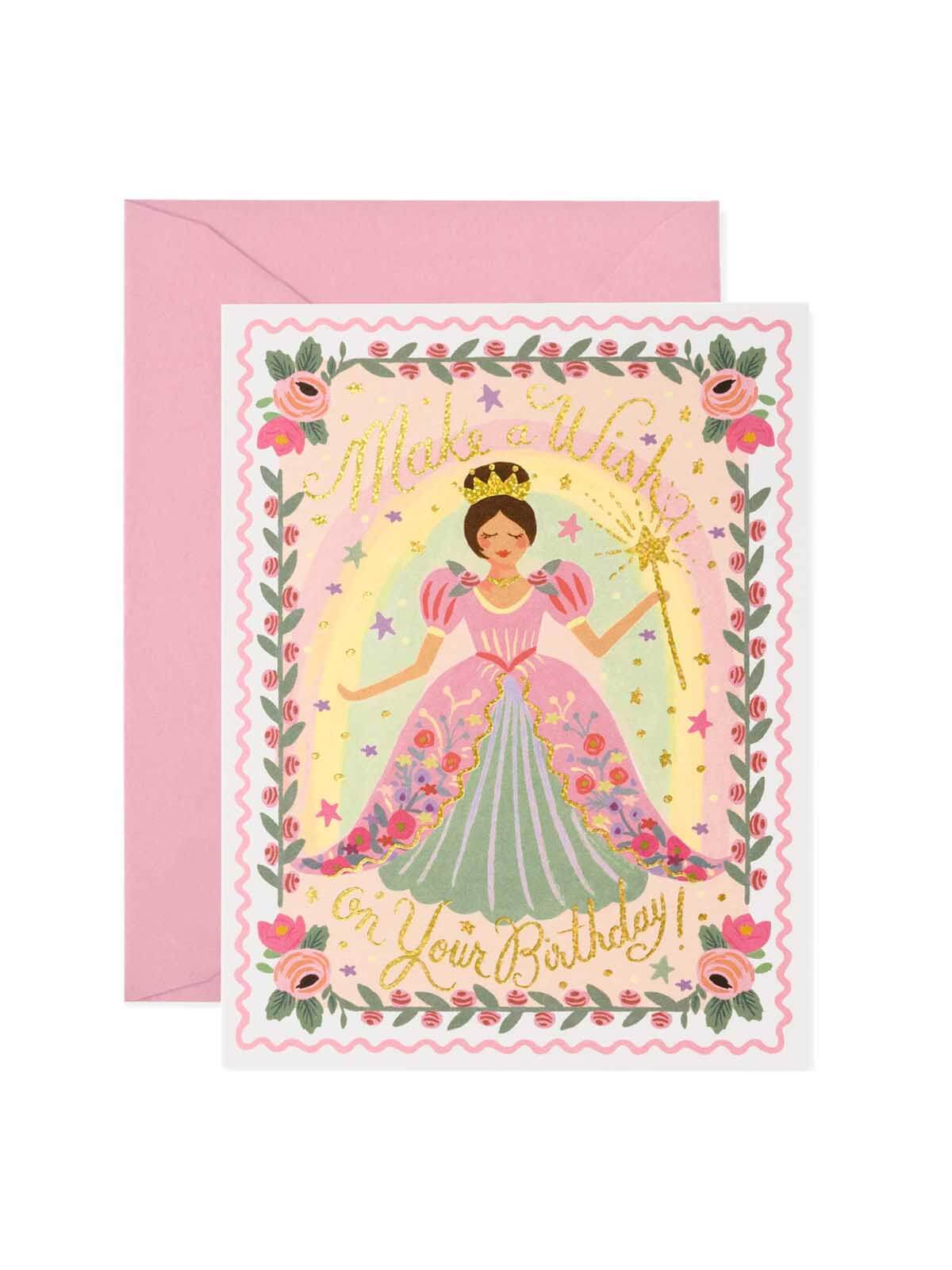 A sparkly pink princess birthday card from Rifle with matching pink envelope for the lover of all things pink!