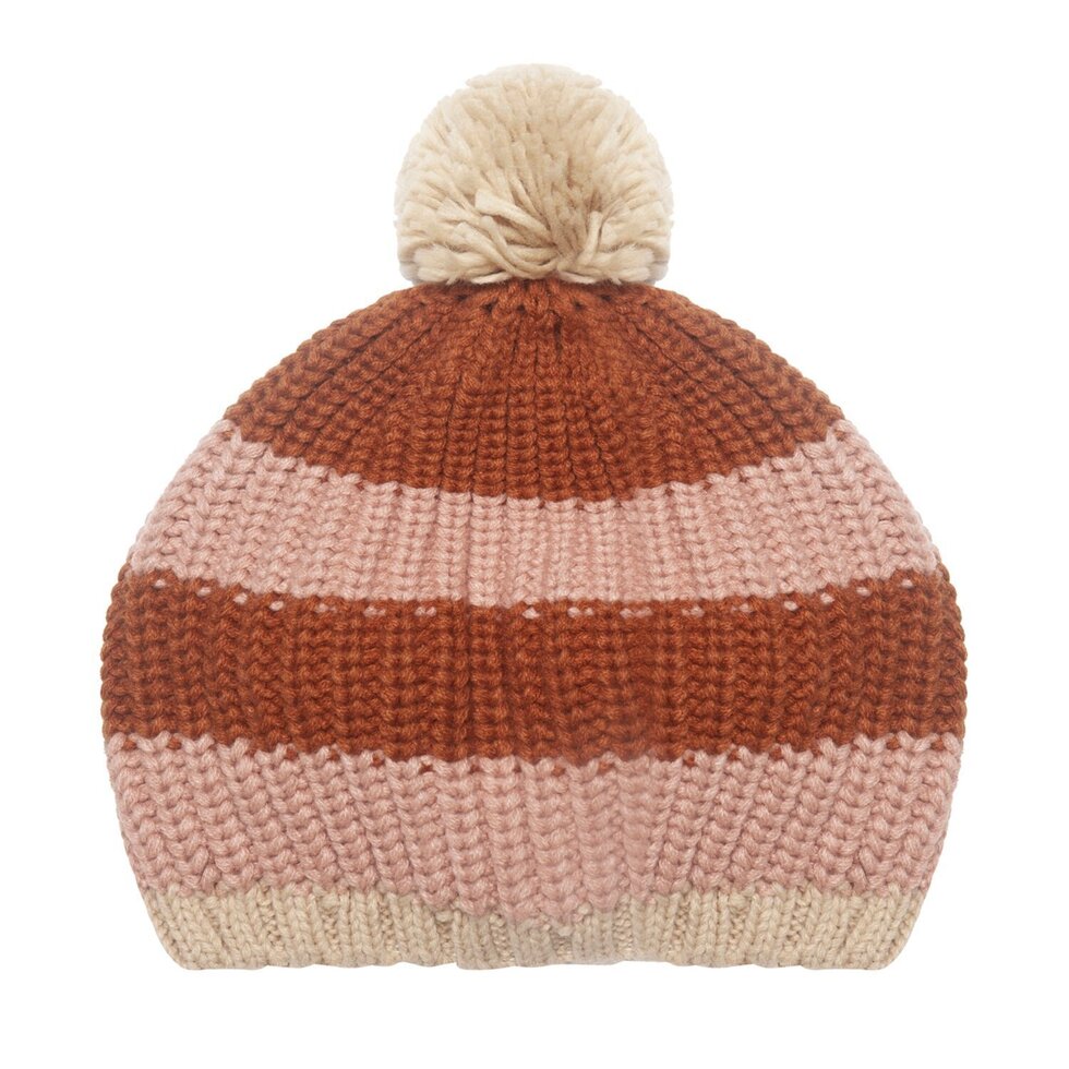 Our cosy striped knitted beret will keep you cosy and warm on all your magical winter adventures! Made in super soft yarn and topped with a neutral pom pom bobble, this beret is fleece lined for added warmth. Available in sizes 3-6 years and 7-10 years.