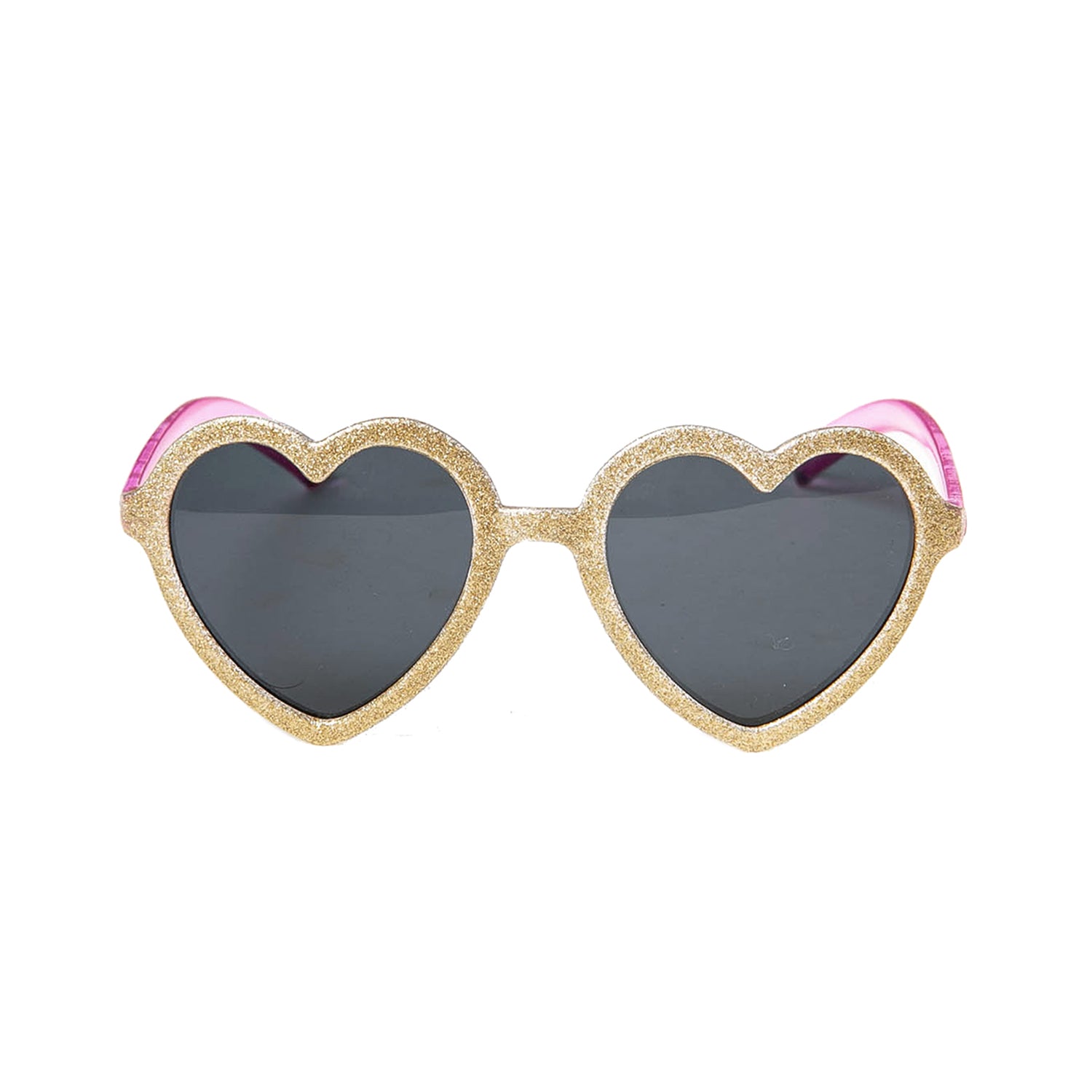 A gorgeous glittery gold heart frame with jelly pink arms - totally cool!