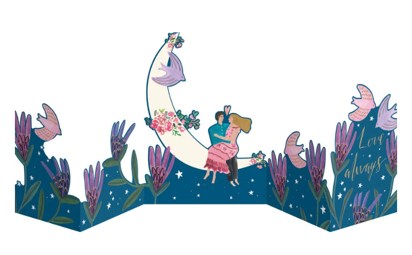 Folds out to make a charming, foil-blocked free-standing scene, with colour illustrations on reverse and a space for your message;