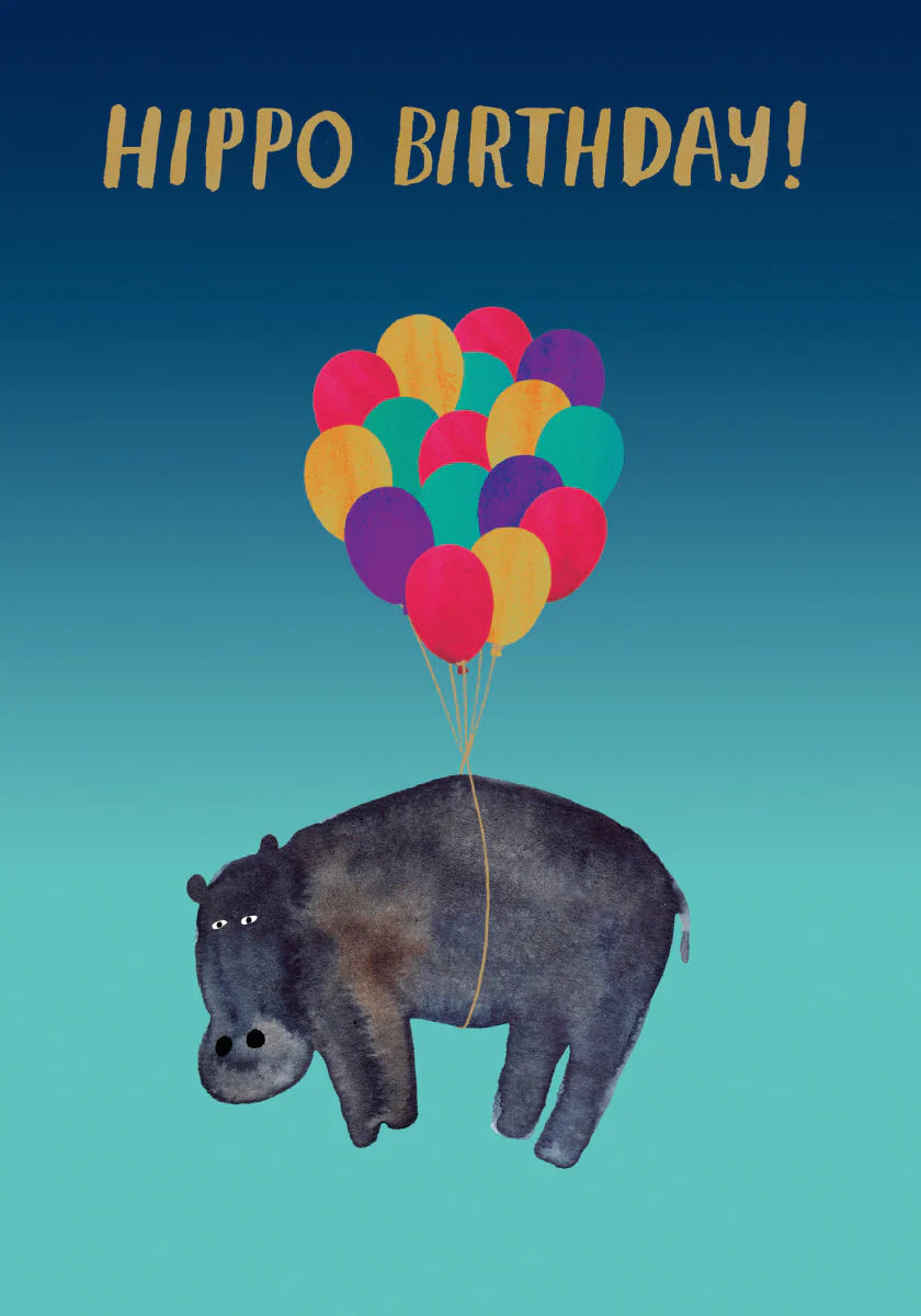 Petite Roger La Borde Hippo Birthday card offers a stylish, smaller alternative to standard cards. Featuring exquisite gold foiling and artwork by Marc Martin on both sides, it brings charm and elegance to any birthday greeting.
