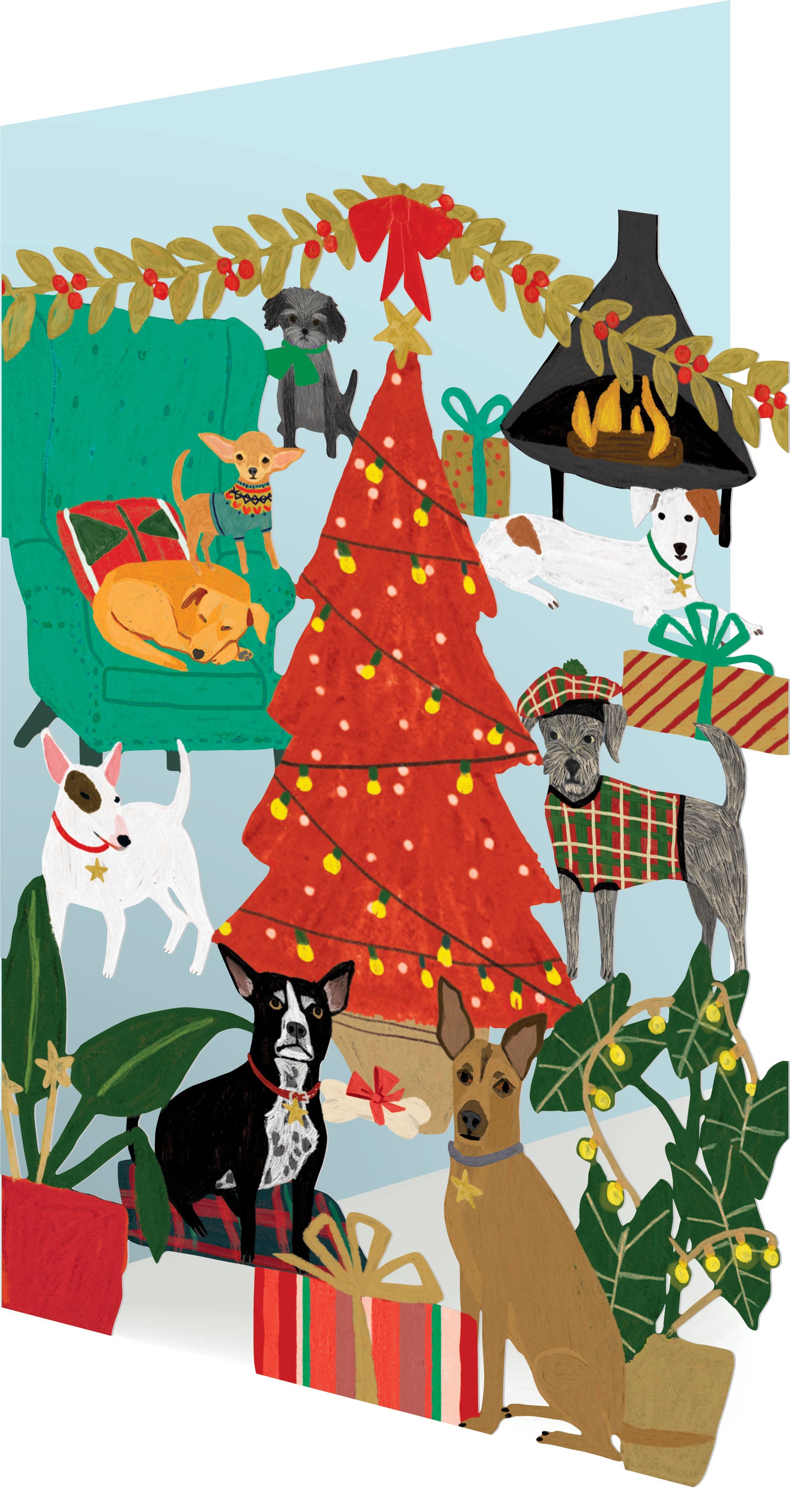 Roger la Borde Laser Cut Christmas Card - Fireside Dogs