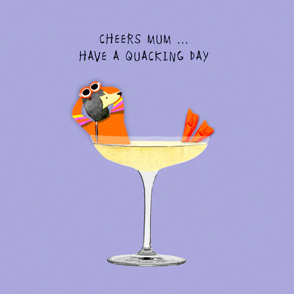 Funny card for Mum. 'Cheers Mum, have a quacking day'.